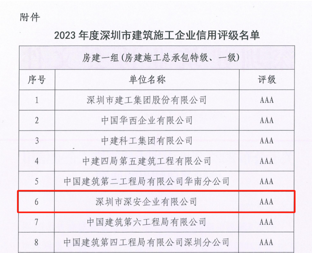 ·深安企業(yè)獲評(píng)2023年度AAA信用企業(yè)