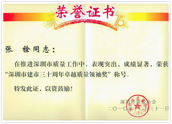 深安企業(yè)被評為:深圳市建市30周年十大優(yōu)質(zhì)建筑(裝飾)單位”