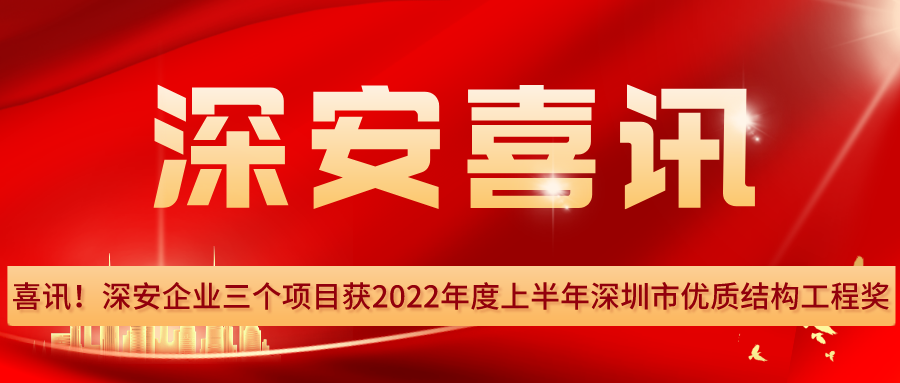 喜訊!深安企業(yè)三個項目獲2022年度上半年深圳市優(yōu)質(zhì)結(jié)構(gòu)工程獎