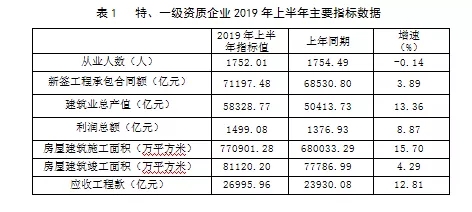 三、2019年上半年建筑業(yè)特、一級(jí)資質(zhì)企業(yè)基本情況分析