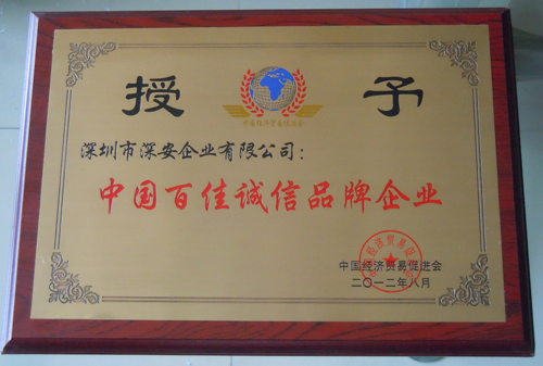 由中國經(jīng)濟貿(mào)易促進會主辦的“第六屆全球華人企業(yè)家論壇暨優(yōu)秀企業(yè)家頒獎典禮”,于2012年8月11日至13日在北京舉行,全國政協(xié)副主席厲無畏、王文元,以及有關(guān)部、委、局主要領(lǐng)導、各省市領(lǐng)導、著名經(jīng)濟學家、海外華商、中國著名企業(yè)家等600余人出席了大會和相關(guān)專業(yè)論壇。大會授予深安企業(yè)“中國百佳誠信品牌企業(yè)”稱號,授予朱小萍董事長“中國女性商界風云人物”榮譽稱號。